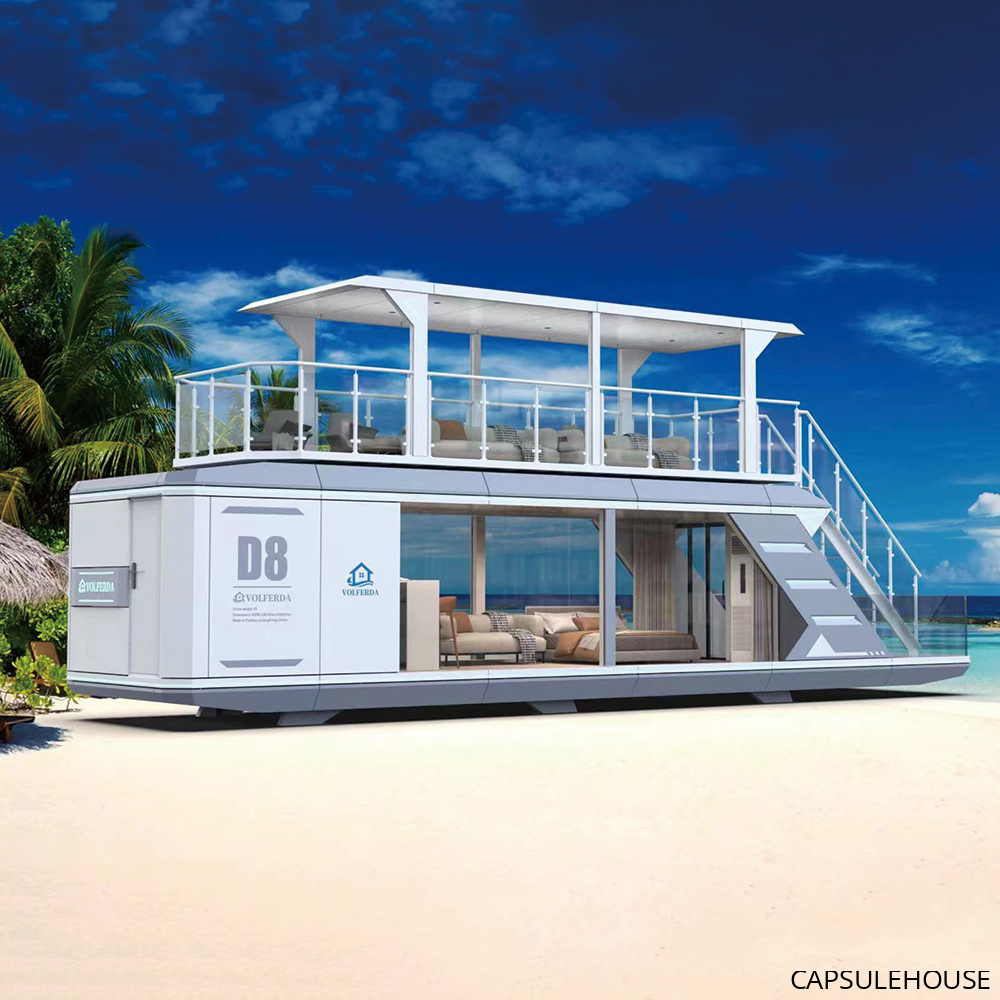 Delivery method: there are two delivery methods for capsule house, the whole hosue and disassembled modular houses. For the whole house delivery, the house will be shipped in 40 flat rack container due to the wide width of the house up to 3.2m, so the shipping costs are relatively high and suitable for only 1-2 houses. For the disassembled modular houses delivery, the house will be shipped in 40 HQ,which saves shipping cost and is suitable for purchasing large quantity of houses.